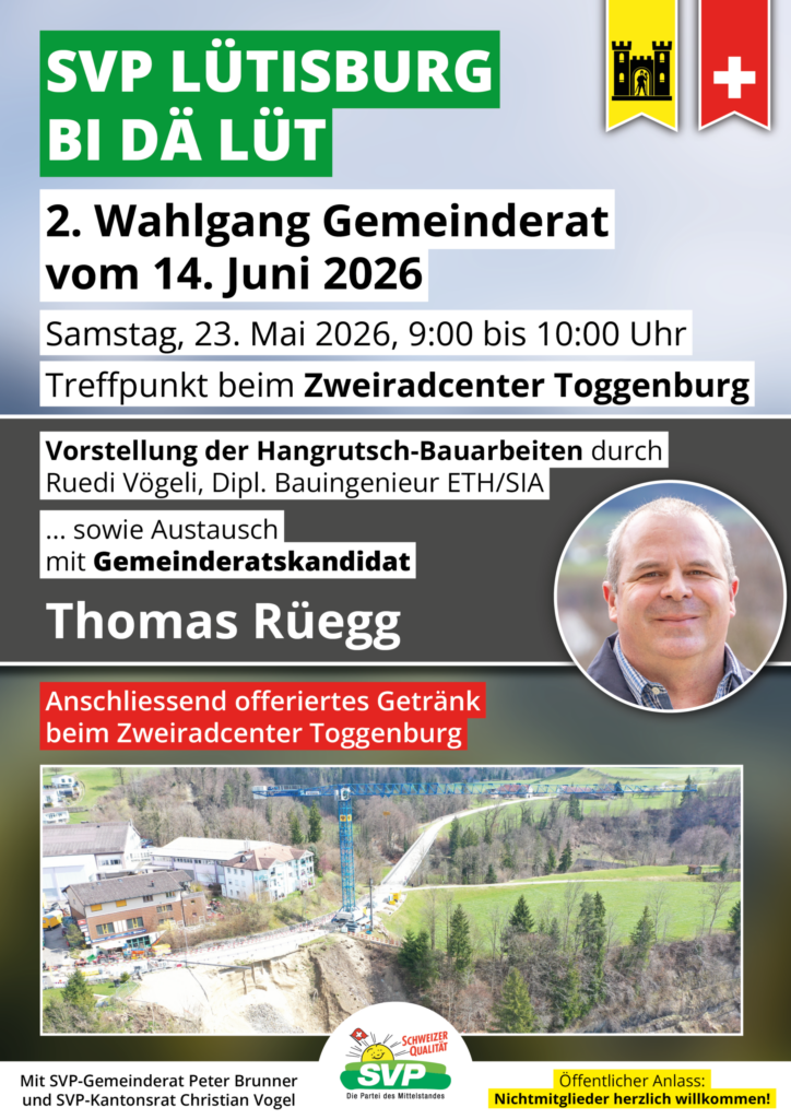 SVP Lütisburg bi da Lüt – Gemeinderatswahlen 2. Wahlgang vom 14. Juni 2026