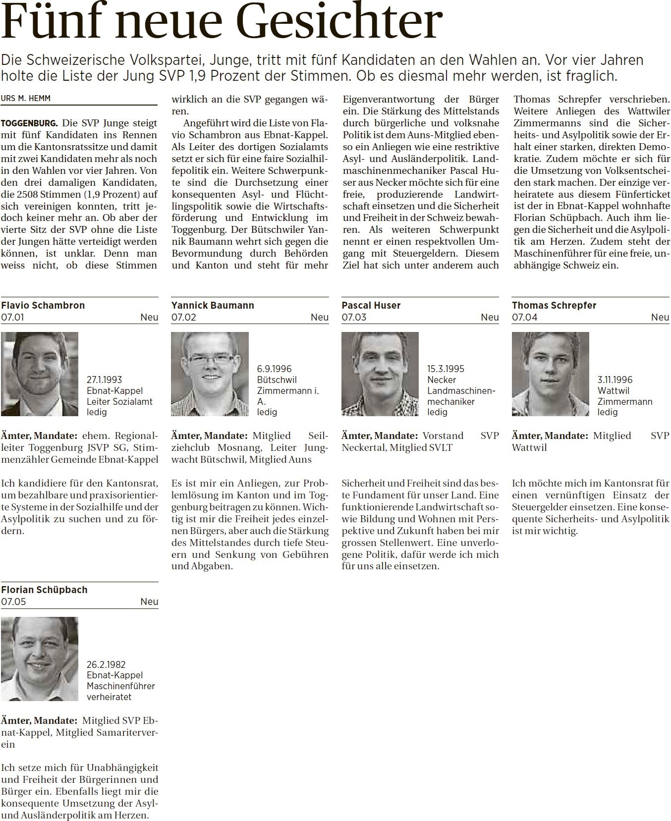 Flyer Kantonsratswahlen 2016 der SVP Toggenburg