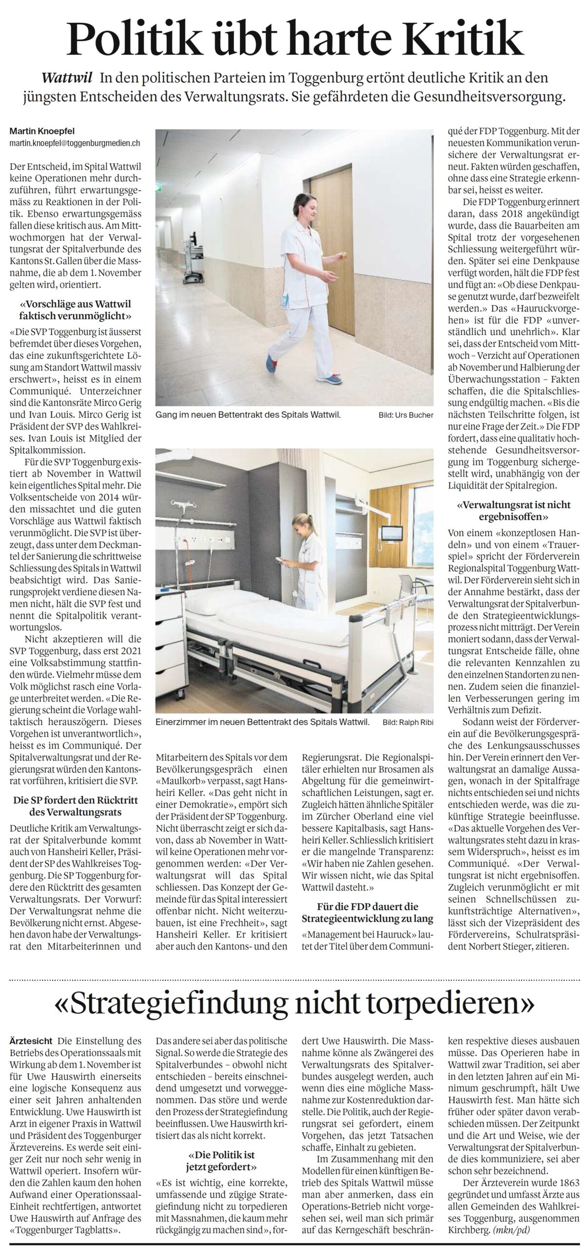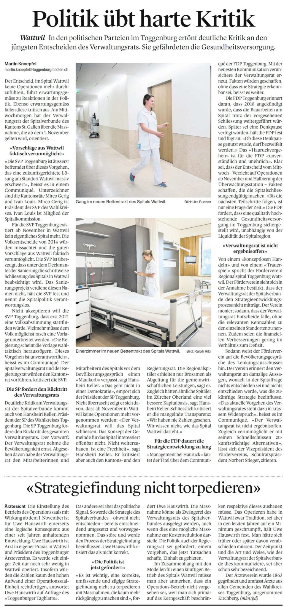 Befremden über verantwortungslose Spitalpolitik